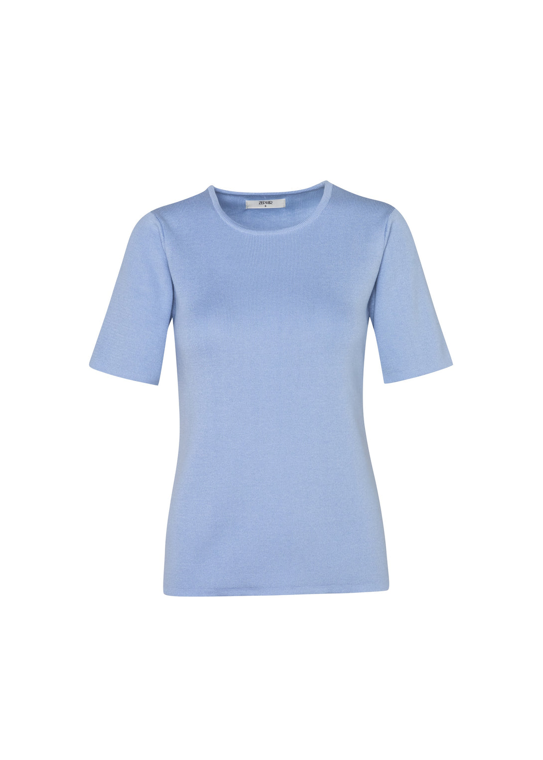 Con cuello redondo y manga corta, esta blusa destaca por su silueta relajada y tejido ligero al tacto.