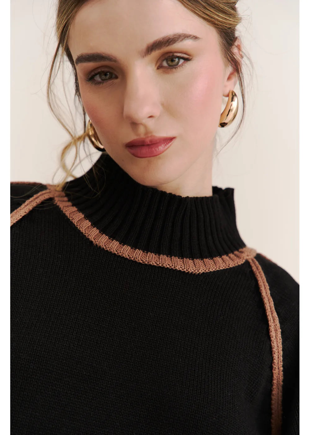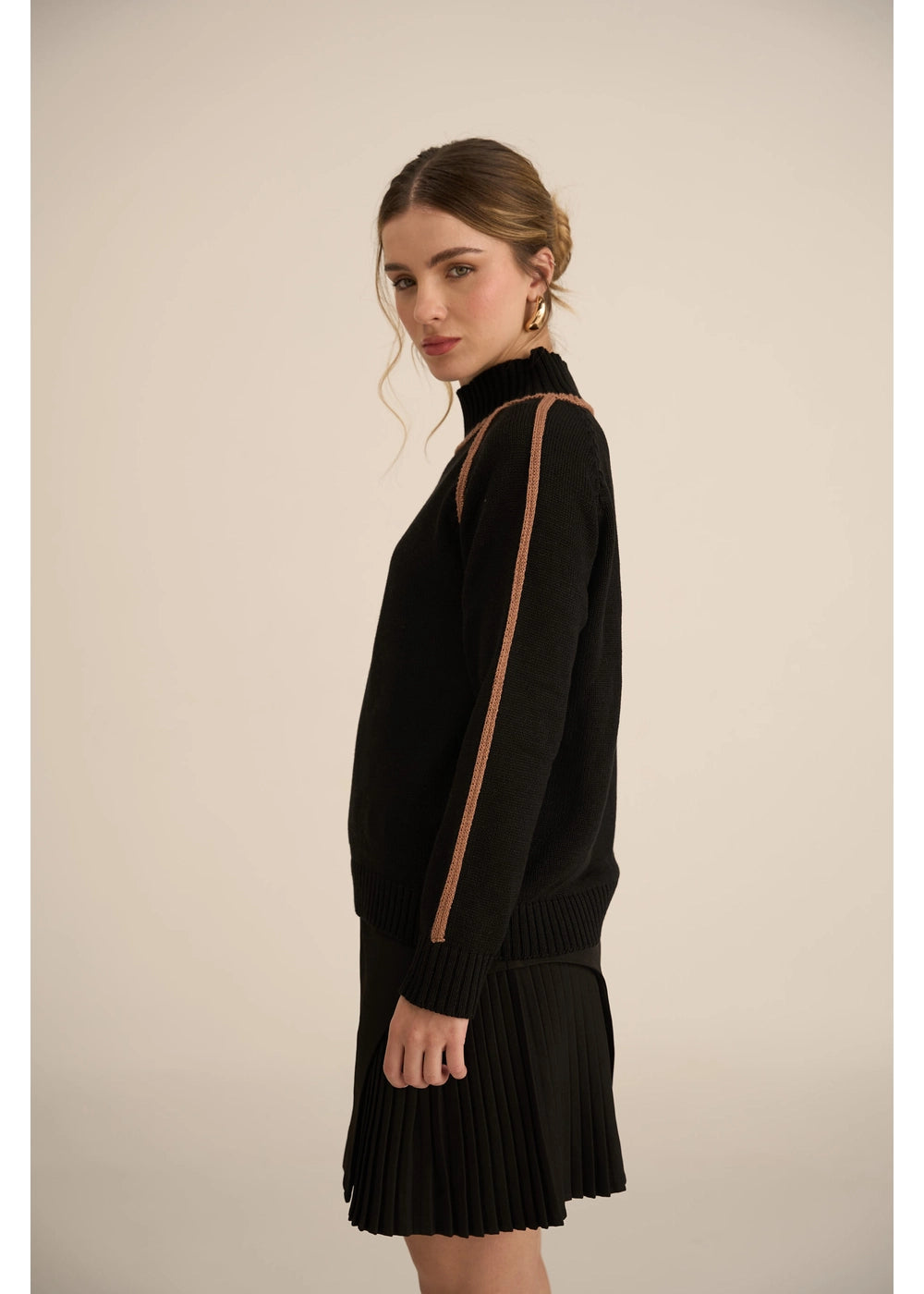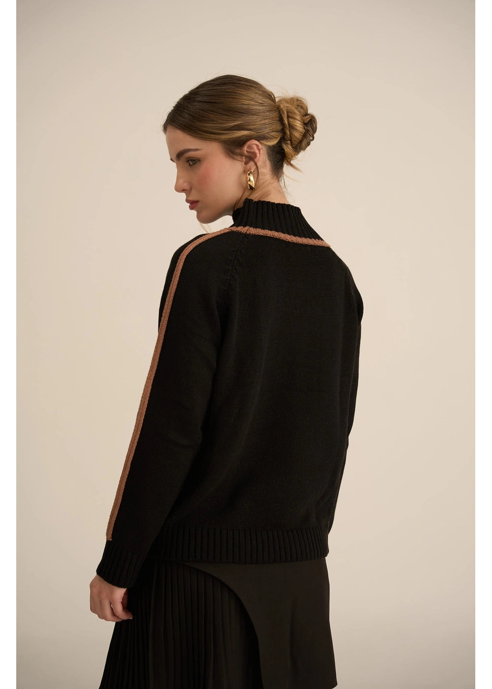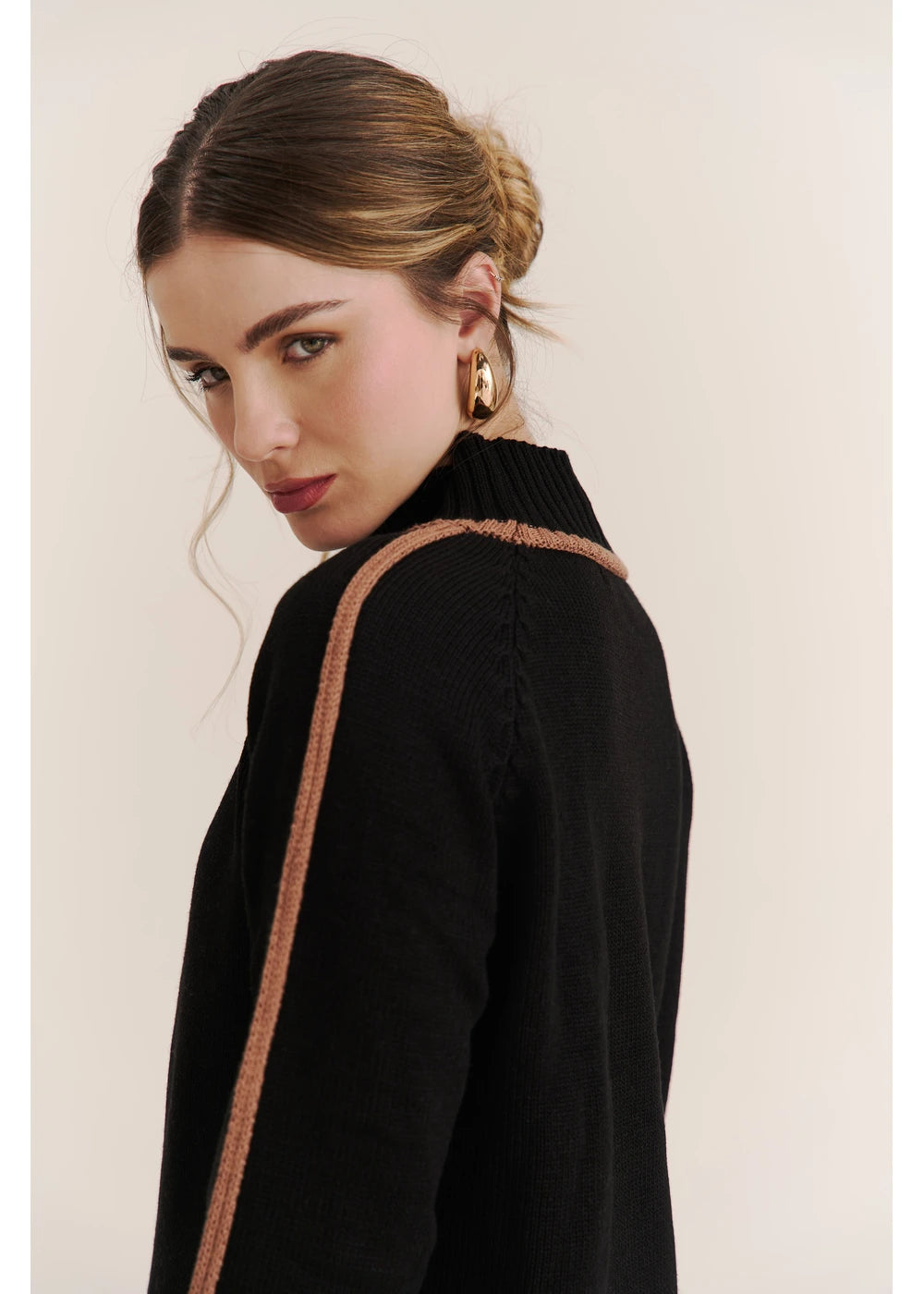 Diseño de manga larga y detalles en relieve en los costados y mangas en color contraste.