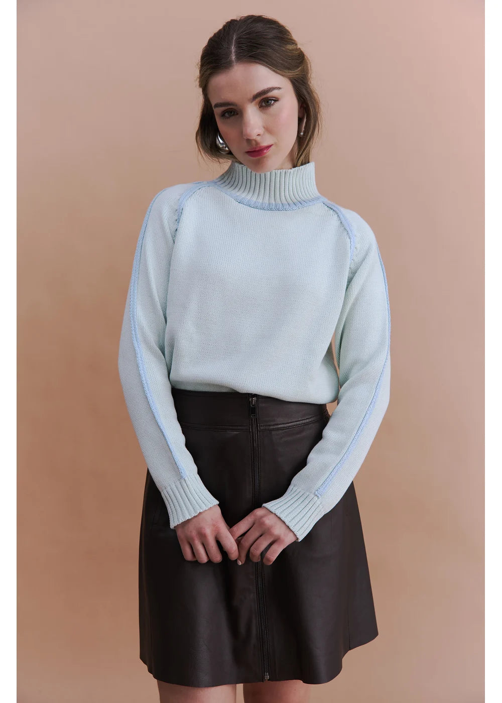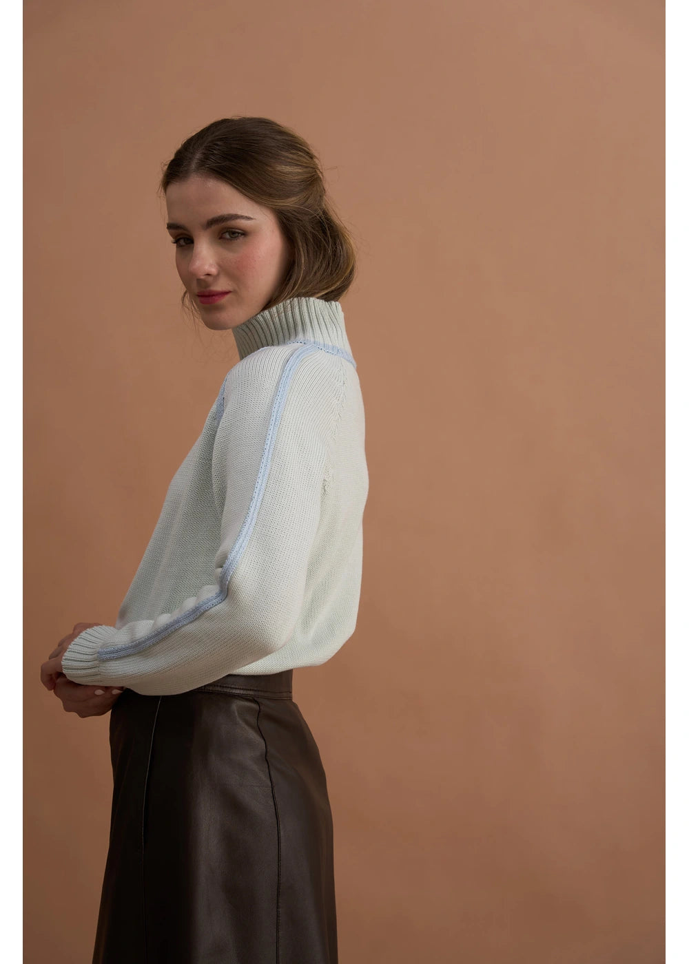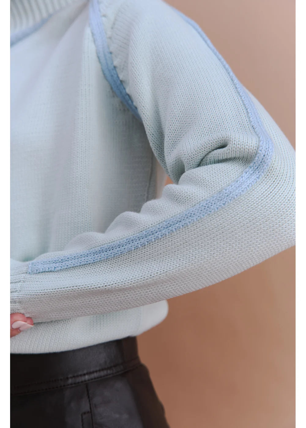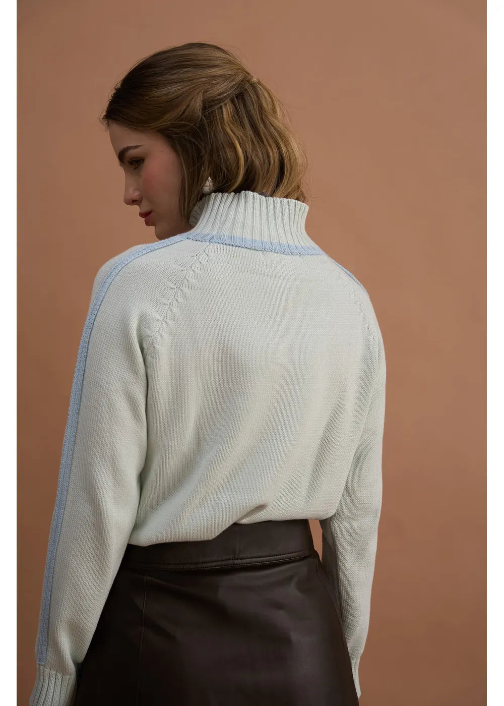 Diseño de manga larga y detalles en relieve en los costados y mangas en color contraste.