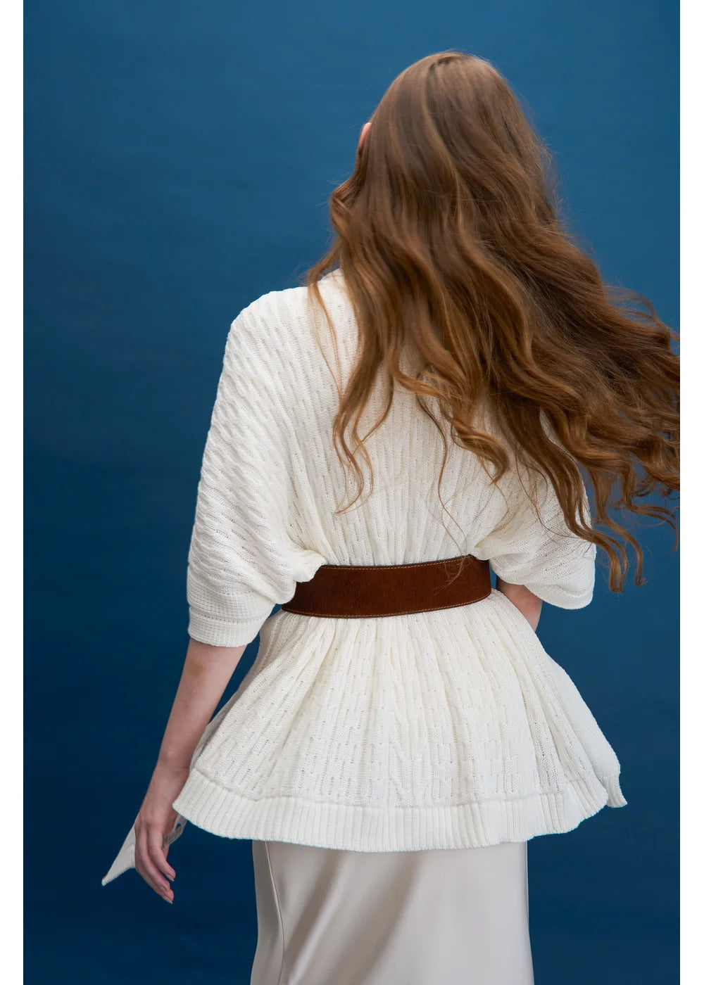 Tejido con textura y un sutil detalle de trenza vertical en el centro.