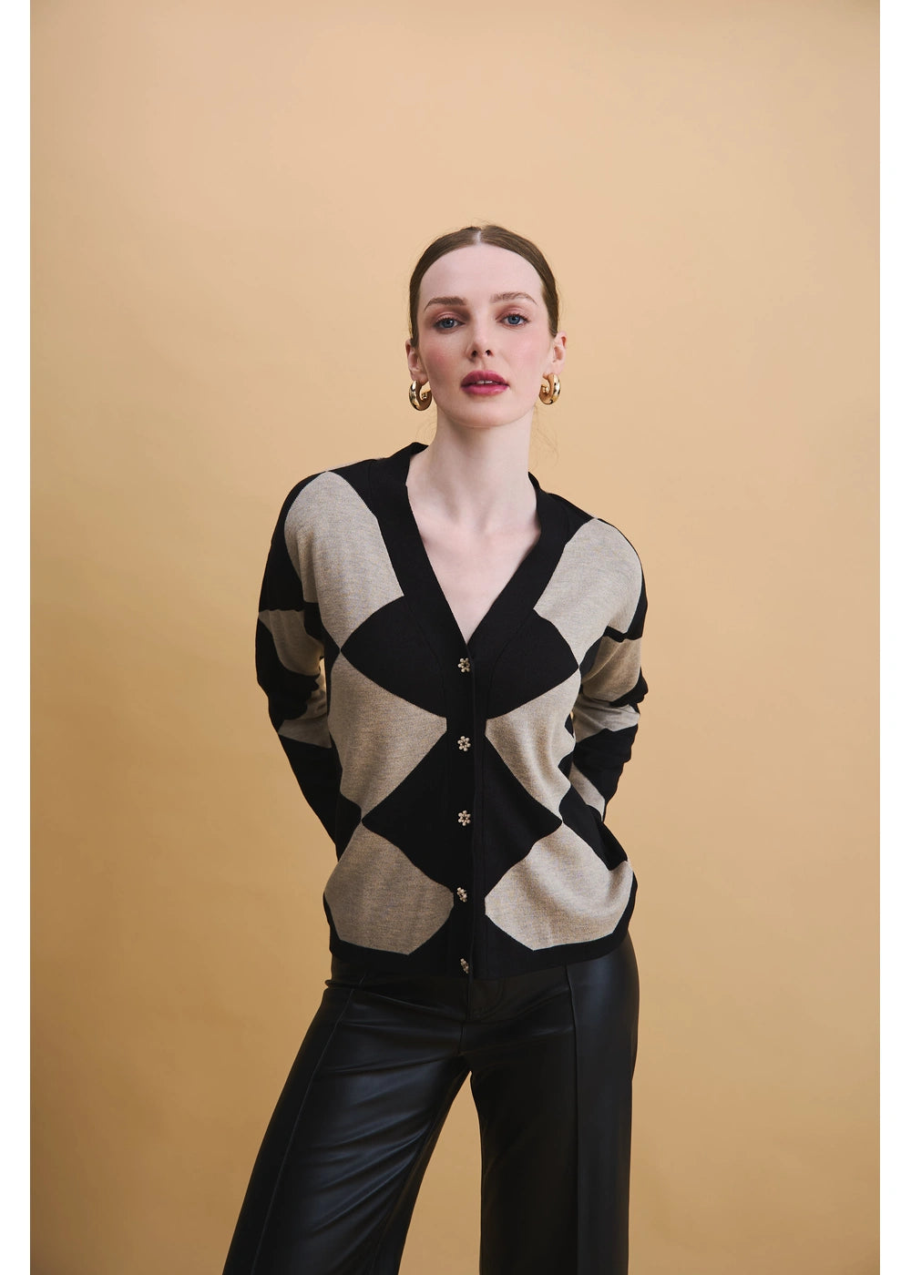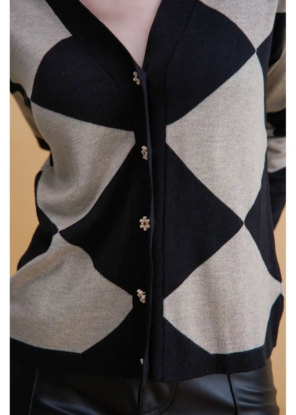 Cardigan Destiny – Estampado Argyle y botones 3D