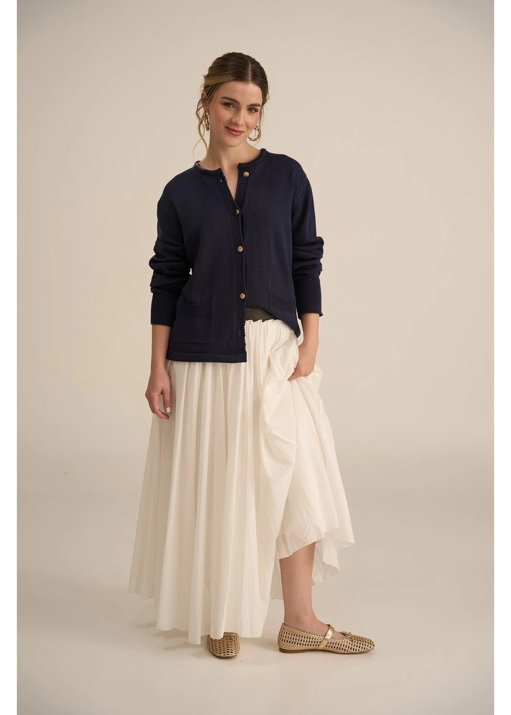 Cárdigan tejido de silueta recta y cómoda, confeccionado en fibras vegetales que lo hacen ligero y suave al tacto.