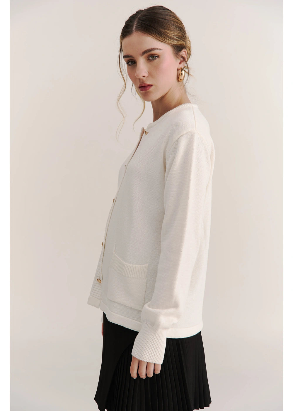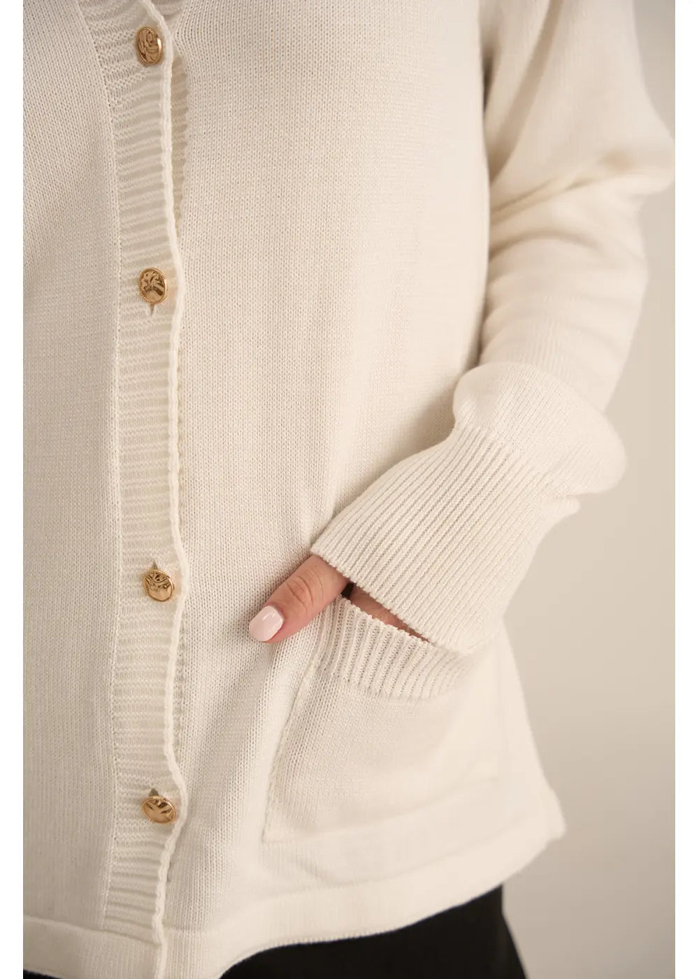 Cárdigan tejido de silueta recta y cómoda, confeccionado en fibras vegetales que lo hacen ligero y suave al tacto.