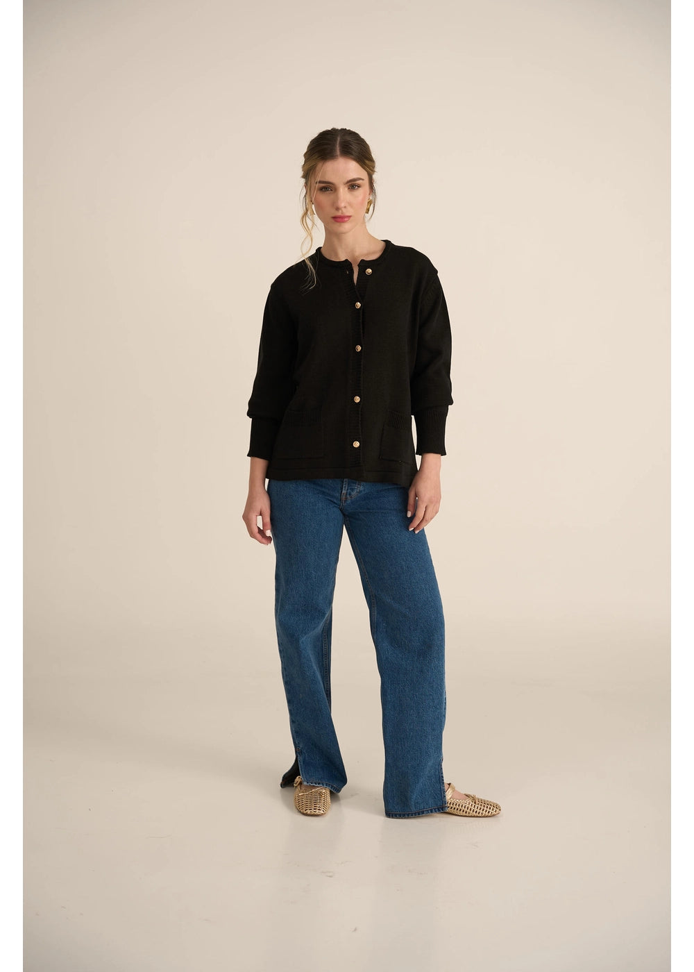 Cárdigan tejido de silueta recta y cómoda, confeccionado en fibras vegetales que lo hacen ligero y suave al tacto.