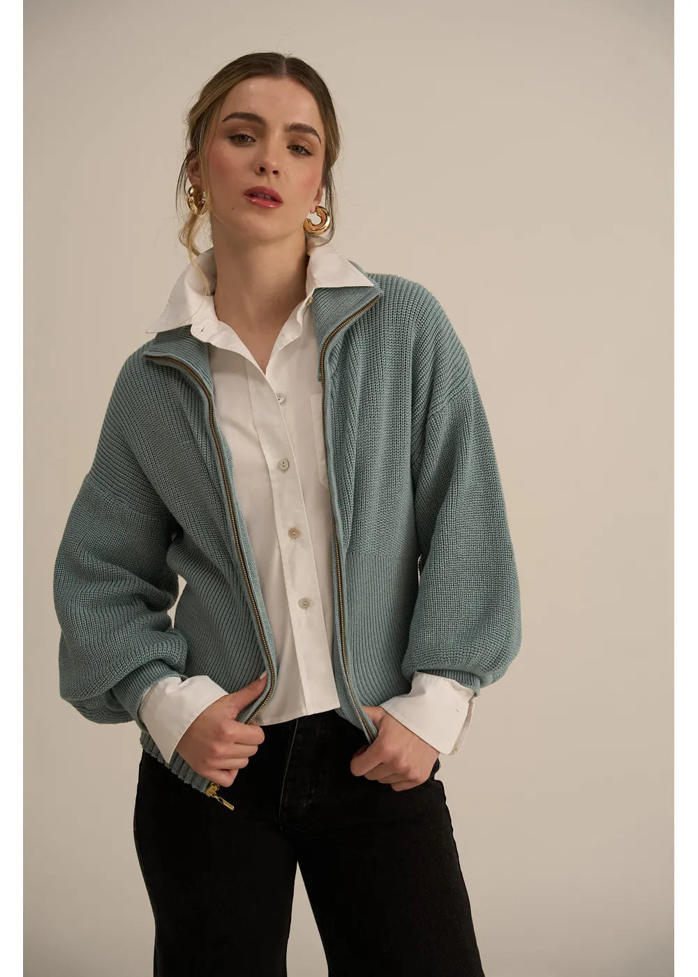 Mangas amplias y tejido acanalado que aportan volumen y modernidad.