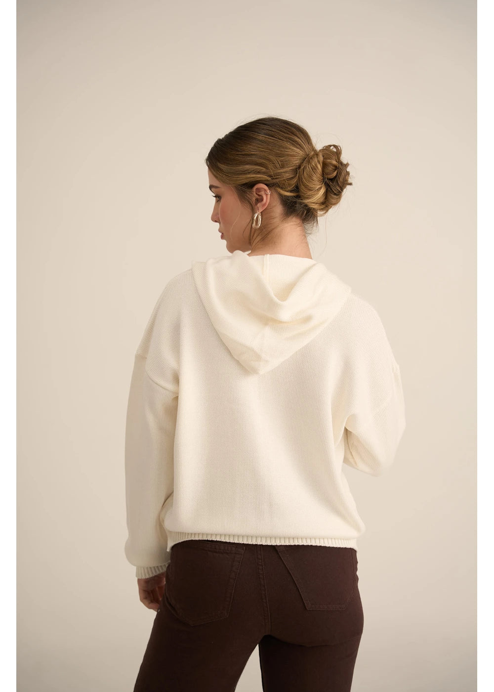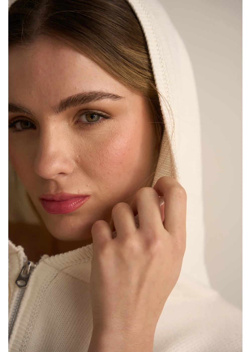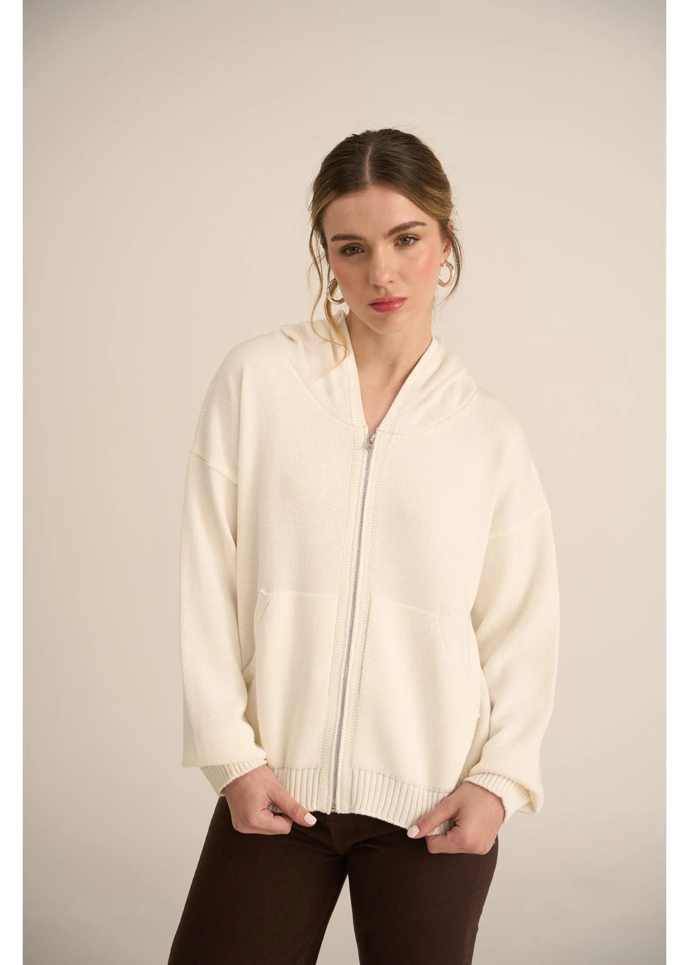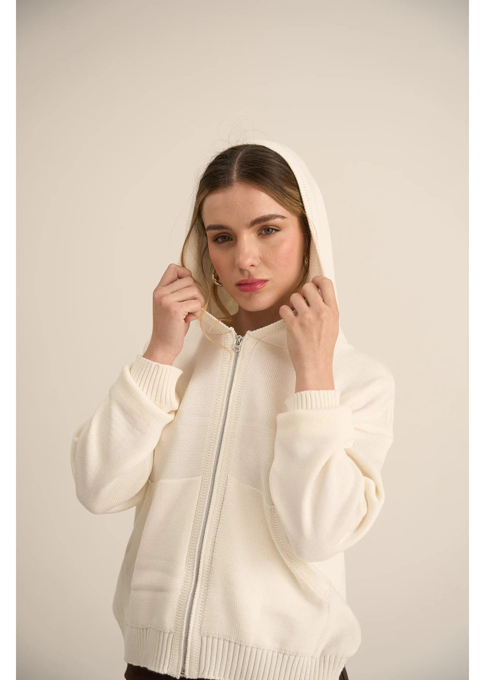 Chaqueta en fibras vegetales con capucha y cierre frontal en cremallera.
