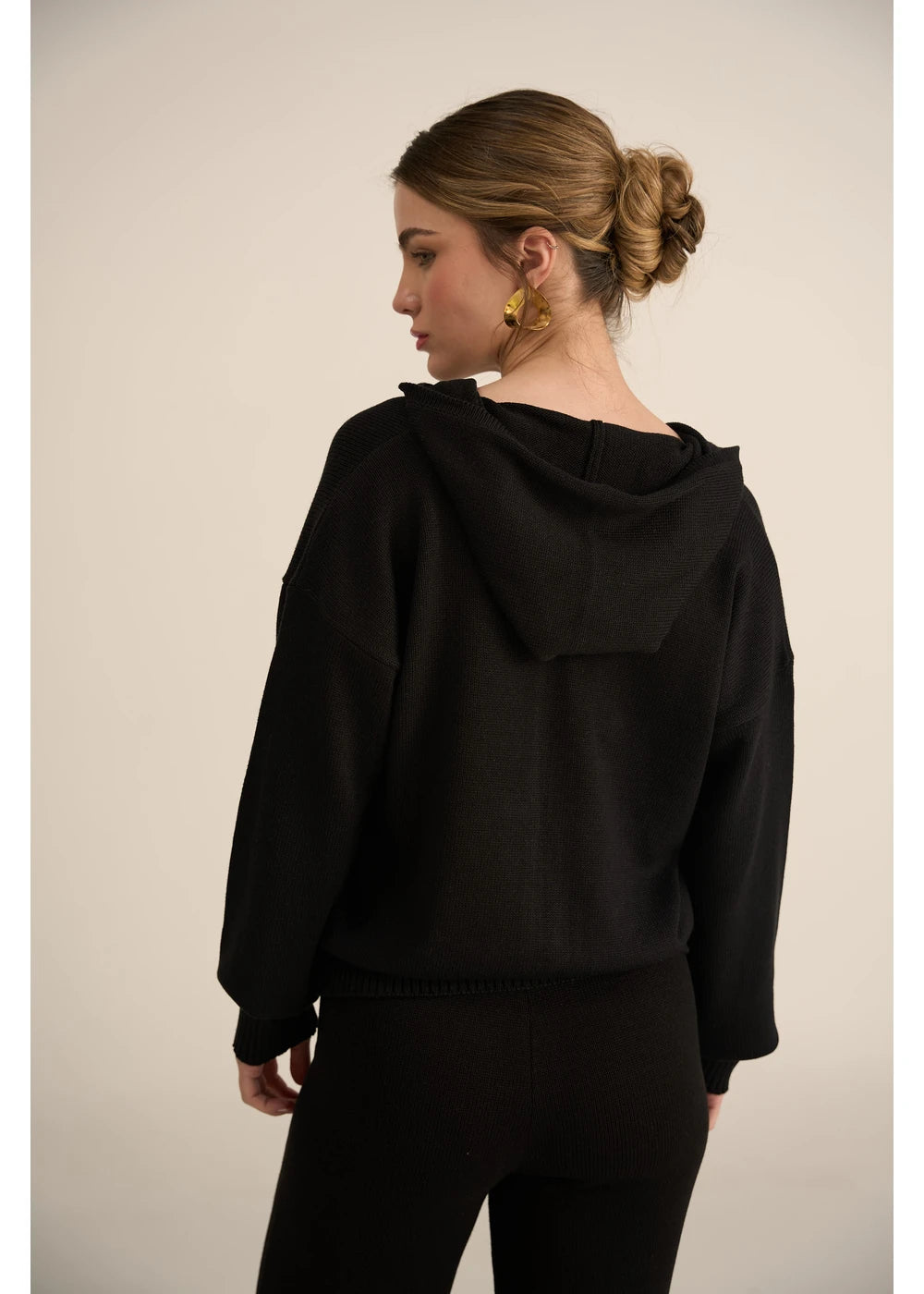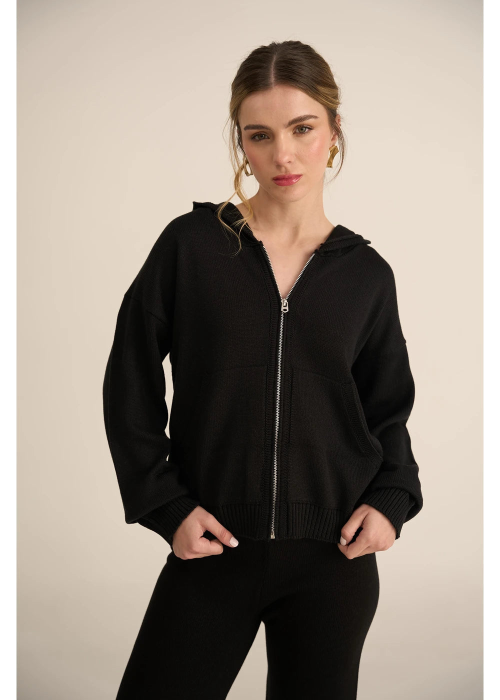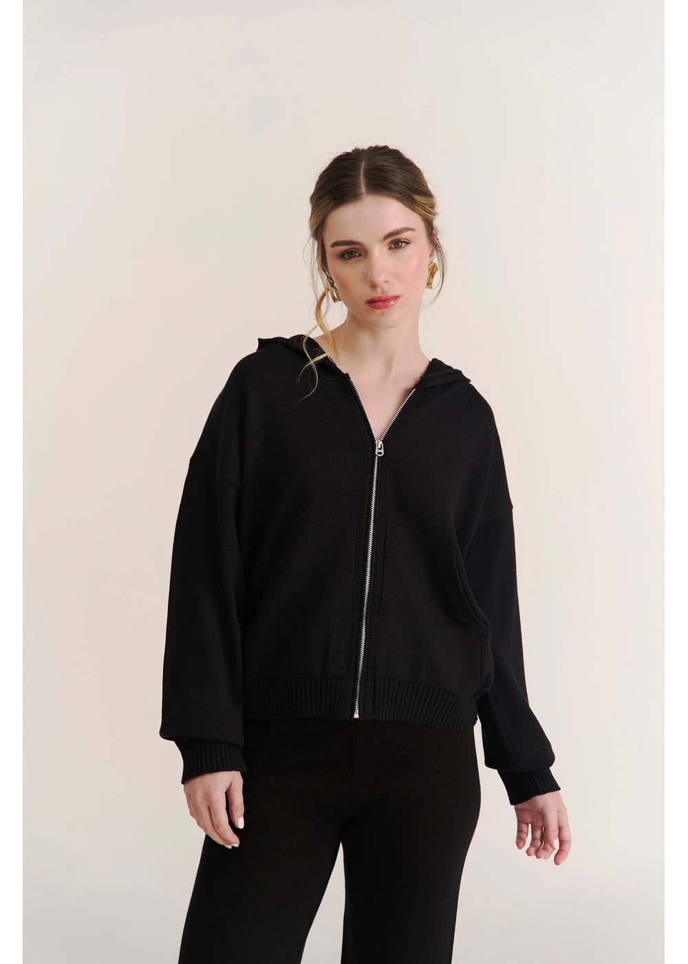 Chaqueta en fibras vegetales con capucha y cierre frontal en cremallera.