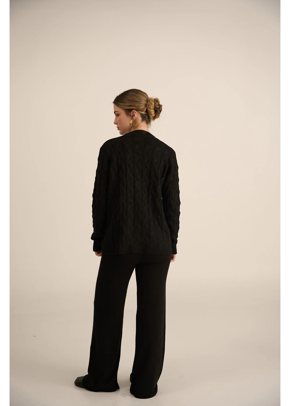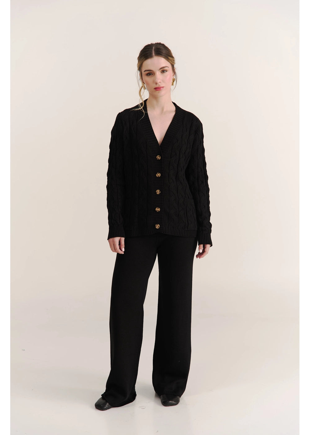 Pantalón tejido de tiro alto y horma recta con cintrura elástica. Tejido tipo jaquard.