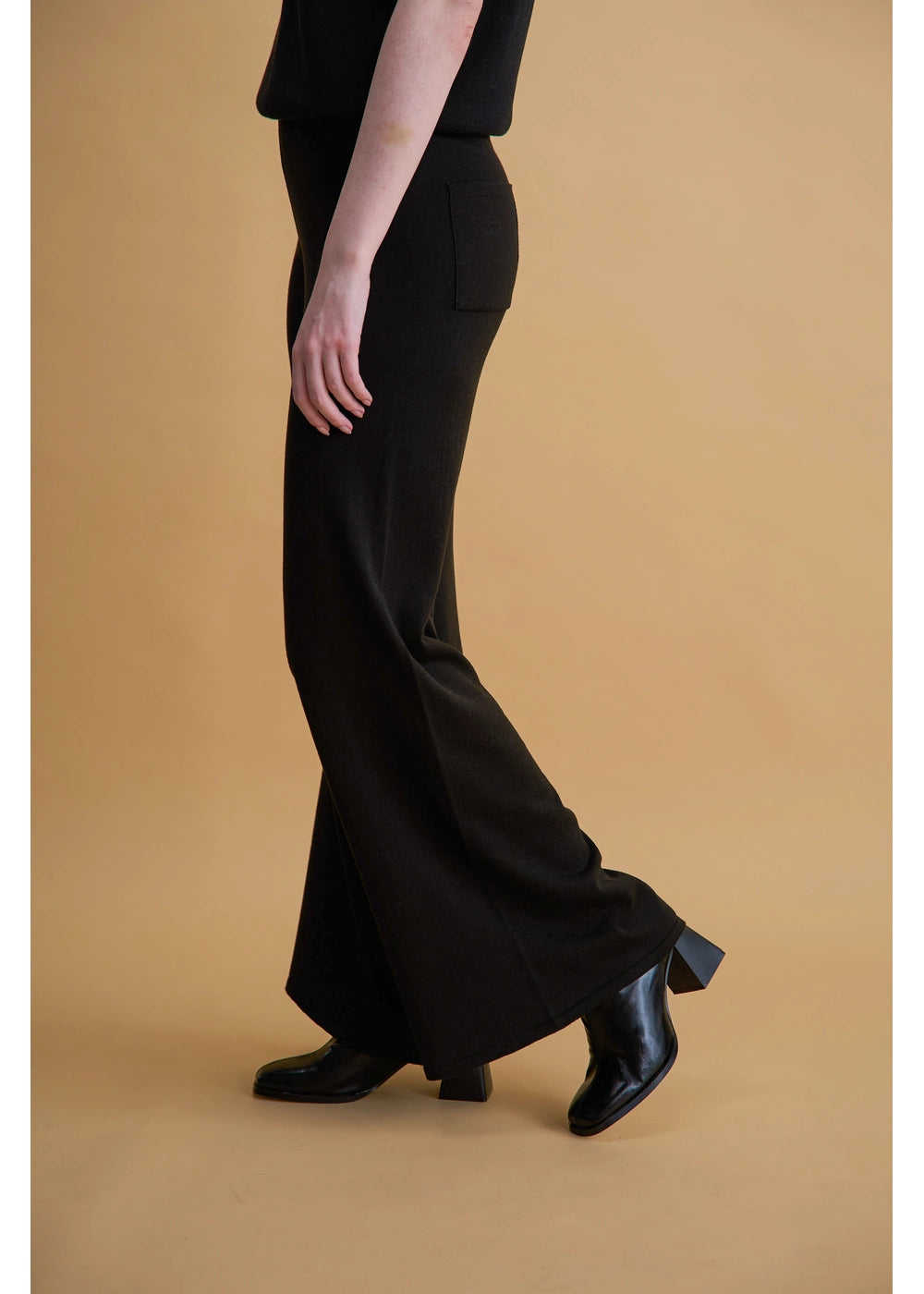 Pantalón de tejido de punto suave con patrón acanalado vertical que estiliza y alarga la figura.