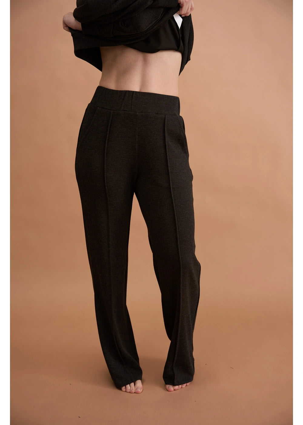 Pantalón tejido de tiro alto con silueta recta y cintura elástica que brinda confort.